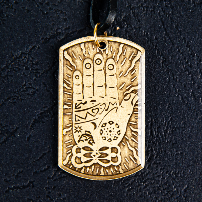 Dlaň štěstí - tzv. Srdcová ruka Kršny - symbol aktivity a vlády, symbol osudu člověka stojícího v Boží dlani. Znamená přátelskou otevřenost, odpuštění, štědrost a vlídnost. Amulet, který dovoluje šťastnou rukou vytáhnout karty vlastního osudu, poznávat pouze dobré přátele, vybírat vždy správně. Dává naději v pomocnou ruku nebes v okamžicích pochyb.