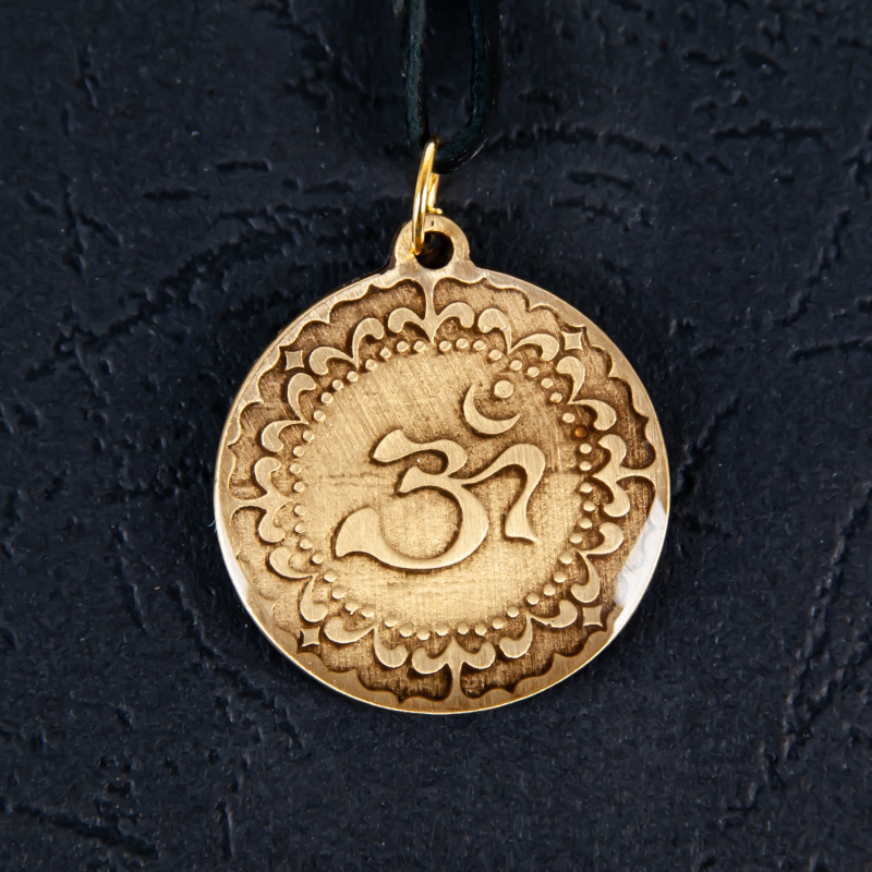 ÓM - starověký indický znak, který vystupuje v hinduistickém náboženství. Je to vizuální forma magického zvuku, mantry, usnadňující prozření, osvícení a sjednocení s nejvyšším principem. Umístění na lotosovém květu přináší stav klidu. Je symbolem absolutna, sjednocení všech moudrostí.
