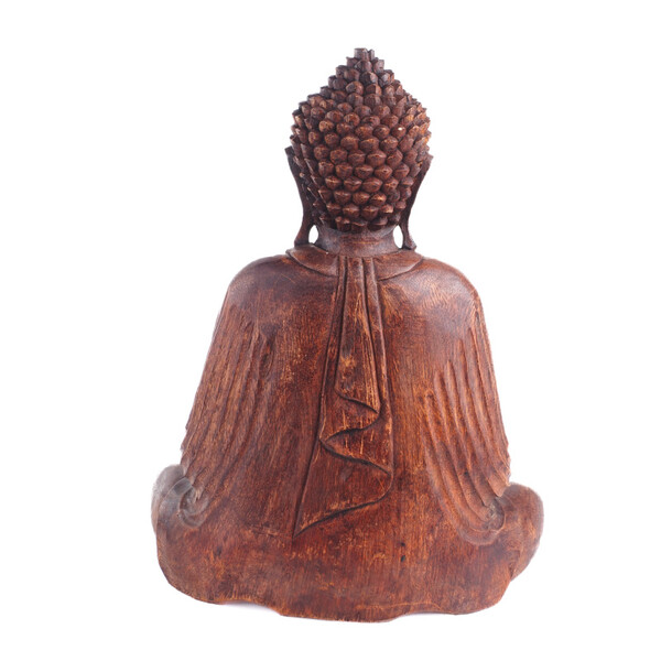 Dřevěné sochy Buddhy zaujímají v buddhistickém umění zvláštní místo. Vyřezané ze štědrosti přírody vyzařují teplo a klid. Forma soch, držení těla a gesta rukou, znamé jako mudry, mají specifické významy. Pozice vsedě se složenýma nohama (padmasana) je základní meditační polohou a vyjadřuje vnitřní mír a osvícení. Symbolickou váhu má i samotný materiál - dřevo. V mnoha kulturách představuje růst, transformaci a spojení s přírodou. Přirozené nedokonalosti dodávají každé soše charakter a osobitost.