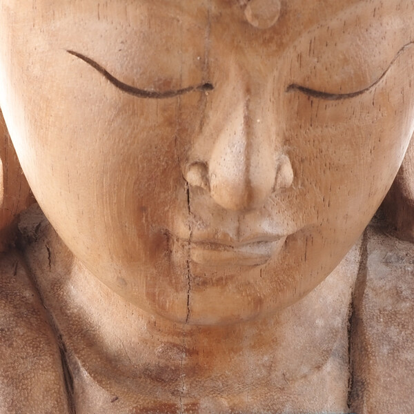 Dřevěné sochy Buddhy zaujímají v buddhistickém umění zvláštní místo. Vyřezané ze štědrosti přírody vyzařují teplo a klid. Forma soch, držení těla a gesta rukou, znamé jako mudry, mají specifické významy. Pozice vsedě se složenýma nohama (padmasana) je základní meditační polohou a vyjadřuje vnitřní mír a osvícení. Symbolickou váhu má i samotný materiál - dřevo. V mnoha kulturách představuje růst, transformaci a spojení s přírodou. Přirozené nedokonalosti dodávají každé soše charakter a osobitost.
