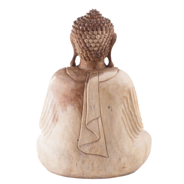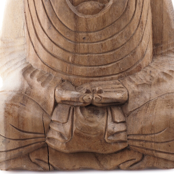 Dřevěné sochy Buddhy zaujímají v buddhistickém umění zvláštní místo. Vyřezané ze štědrosti přírody vyzařují teplo a klid. Forma soch, držení těla a gesta rukou, znamé jako mudry, mají specifické významy. Pozice vsedě se složenýma nohama (padmasana) je základní meditační polohou a vyjadřuje vnitřní mír a osvícení. Symbolickou váhu má i samotný materiál - dřevo. V mnoha kulturách představuje růst, transformaci a spojení s přírodou. Přirozené nedokonalosti dodávají každé soše charakter a osobitost.