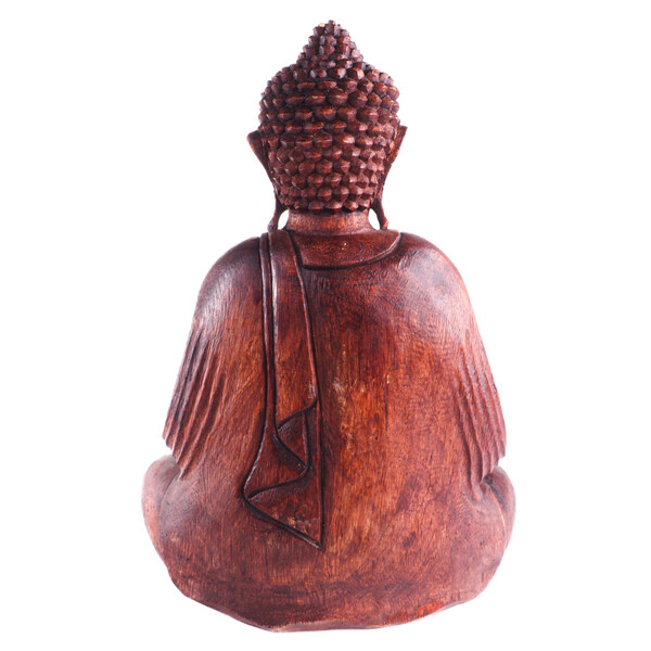 Dřevěné sochy Buddhy zaujímají v buddhistickém umění zvláštní místo. Vyřezané ze štědrosti přírody vyzařují teplo a klid. Forma soch, držení těla a gesta rukou, znamé jako mudry, mají specifické významy. Pozice vsedě se složenýma nohama (padmasana) je základní meditační polohou a vyjadřuje vnitřní mír a osvícení. Symbolickou váhu má i samotný materiál - dřevo. V mnoha kulturách představuje růst, transformaci a spojení s přírodou. Přirozené nedokonalosti dodávají každé soše charakter a osobitost.