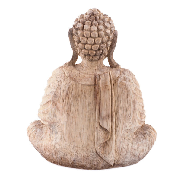 Dřevěné sochy Buddhy zaujímají v buddhistickém umění zvláštní místo. Vyřezané ze štědrosti přírody vyzařují teplo a klid. Forma soch, držení těla a gesta rukou, znamé jako mudry, mají specifické významy. Spojení palce a ukazováčku do kruhu, přičemž ostatní tři prsty zůstávají natažené, se nazývá Vitarka mudra. Je gestem intelektuálního diskursu, vzdělávání a předávání moudrosti. Kruh zde představuje nepřetržitý tok energie symbolizující nekonečný cyklus výuky a učení. Dlaň směřuje ven, což znamená otevřenost a akt komunikace. Symbolickou váhu má i samotný materiál - dřevo. V mnoha kulturách představuje růst, transformaci a spojení s přírodou. Přirozené nedokonalosti dodávají každé soše charakter a osobitost.