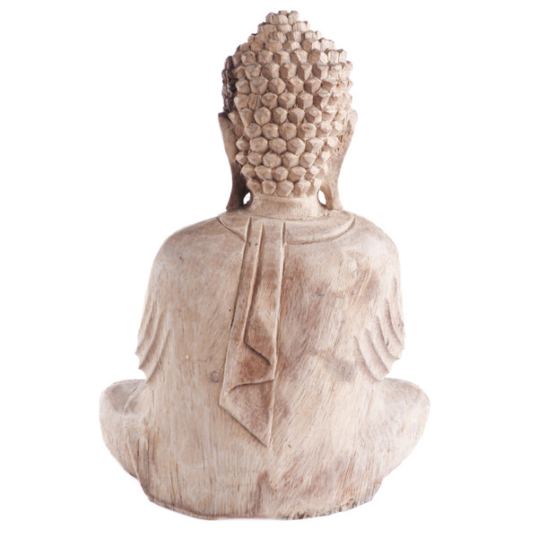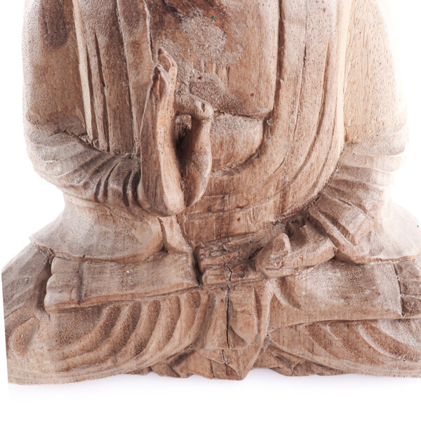 Dřevěné sochy Buddhy zaujímají v buddhistickém umění zvláštní místo. Vyřezané ze štědrosti přírody vyzařují teplo a klid. Forma soch, držení těla a gesta rukou, znamé jako mudry, mají specifické významy. Spojení palce a ukazováčku do kruhu, přičemž ostatní tři prsty zůstávají natažené, se nazývá Vitarka mudra. Je gestem intelektuálního diskursu, vzdělávání a předávání moudrosti. Kruh zde představuje nepřetržitý tok energie symbolizující nekonečný cyklus výuky a učení. Dlaň směřuje ven, což znamená otevřenost a akt komunikace. Symbolickou váhu má i samotný materiál - dřevo. V mnoha kulturách představuje růst, transformaci a spojení s přírodou. Přirozené nedokonalosti dodávají každé soše charakter a osobitost.