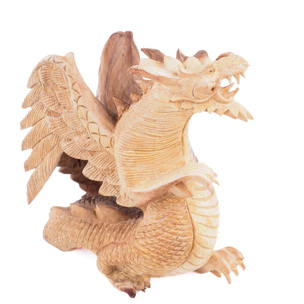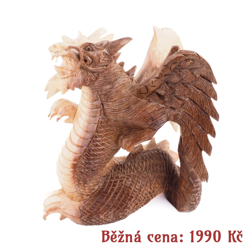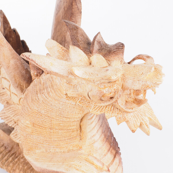 Popis produktu Bazar - soška dřevo Drak s křídly dozadu 20 cm světlá 01