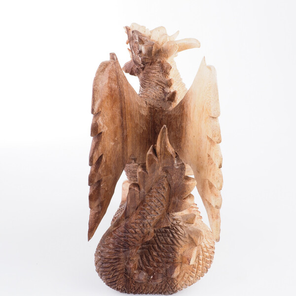 Drak je v mnoha tradičních kulturách považován za posvátné zvíře. Dle legendy drak ochraňoval ostrov Bali před vetřelci a nebezpečím. Motiv draka vyjadřuje sílu, odvahu, prosperitu a štěstí. Věří se, že drak je strážcem bohů a oddaně chrání posvátnost domova. Symbolickou váhu má i samotný materiál - dřevo. V mnoha kulturách představuje růst, transformaci a spojení s přírodou. Přirozené nedokonalosti dodávají každé soše charakter a osobitost.