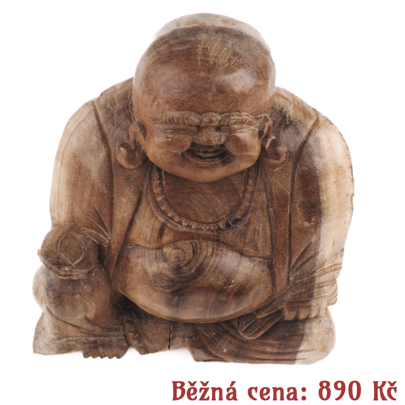 Popis produktu Bazar - soška dřevo Happy Buddha 15 cm světlá 01