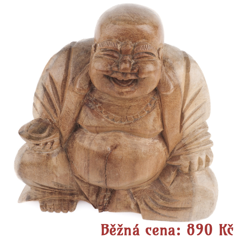 Popis produktu Bazar - soška dřevo Happy Buddha 15 cm světlá 04