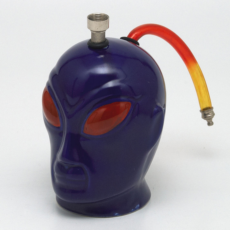 Modrý keramický bong střední velikosti ve tvaru hlavy mimozemšťana
