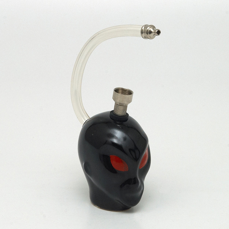 Malý bong vyrobený z keramiky ve tvaru hlavy černého mimozemšťana