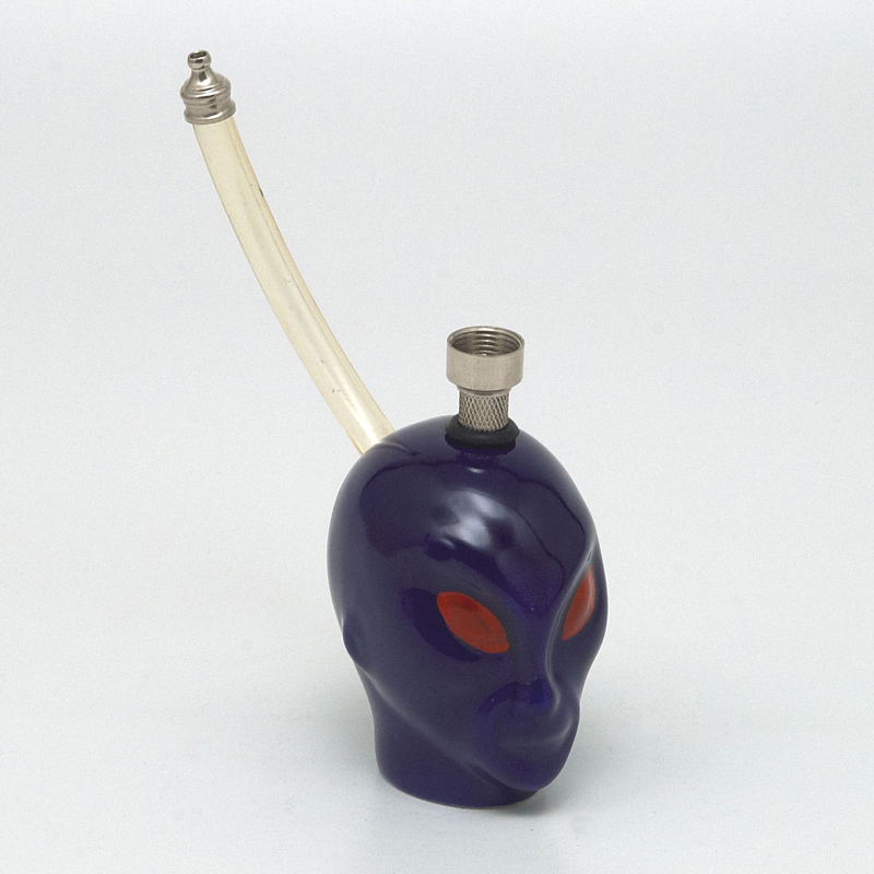 Malý bong vyrobený z keramiky ve tvaru hlavy modrého mimozemšťana