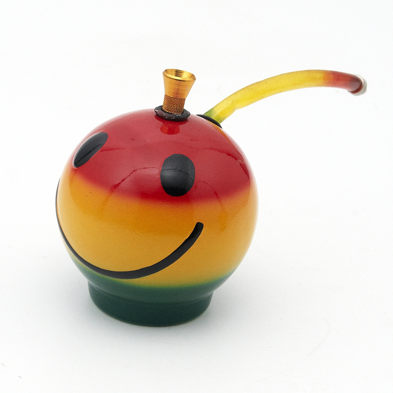 Malý bong vyrobený z keramiky ve tvaru oblíbeného usměvavého obličeje v tradiční rasta kombinaci barev. Uvedená velikost je přibližná