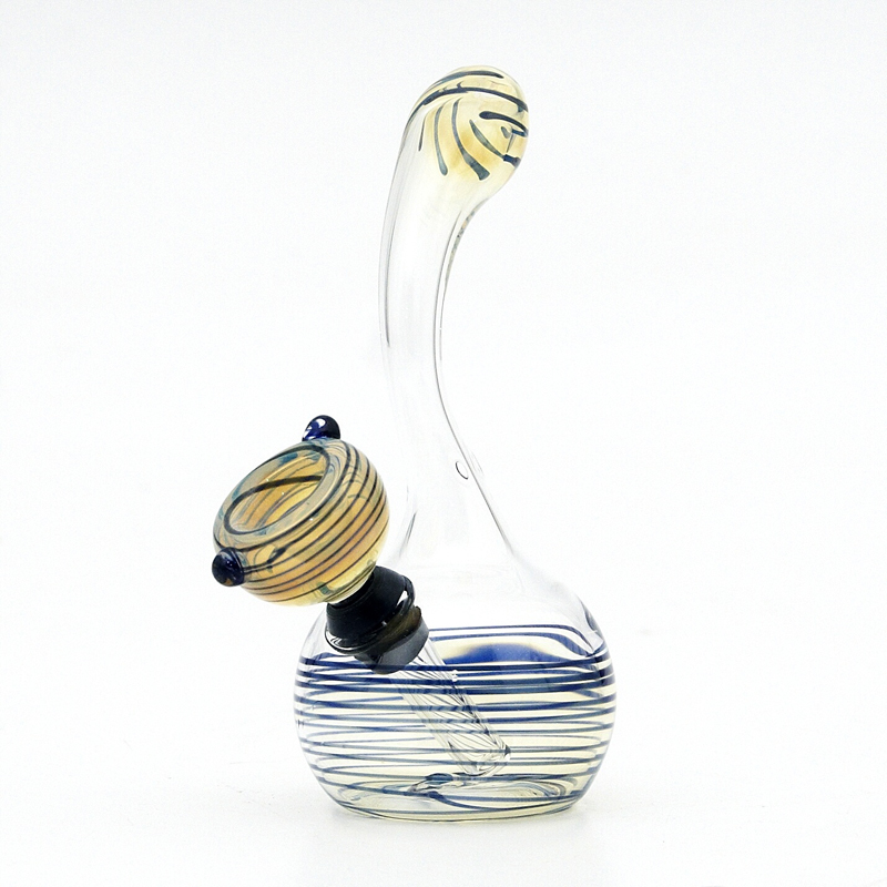 Malý, nádherně probarvený bong z odolného borosilikátového skla pyrex se zahnutým náustkem