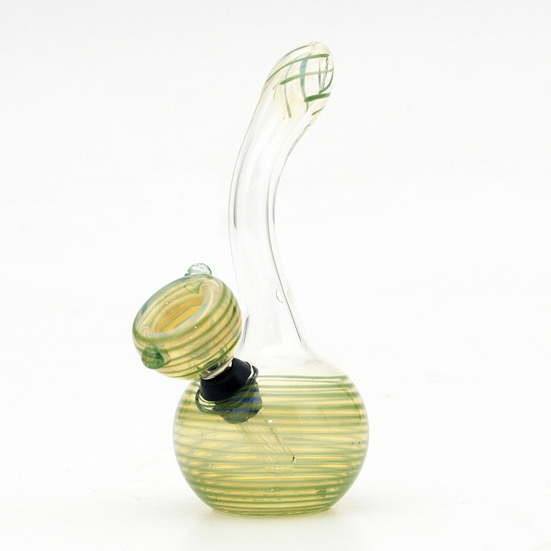 Malý, nádherně probarvený bong z odolného borosilikátového skla pyrex se zahnutým náustkem