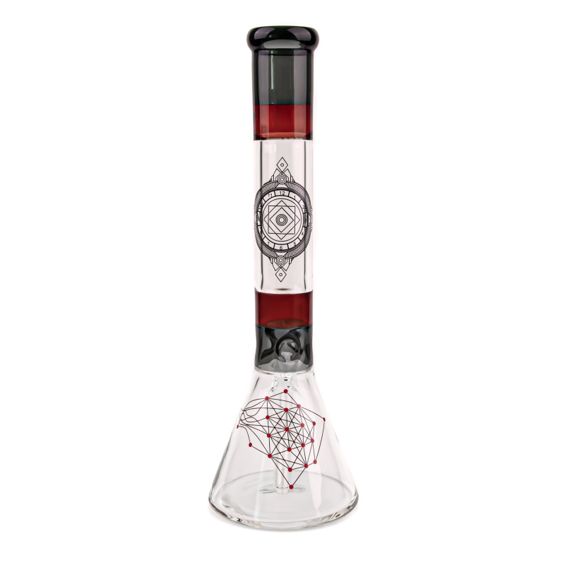 Bong z tvrzeného skla Simax Amsterdam Heavy Beaker Geometry Black 41 cm červený s motivem geometrických vzorů