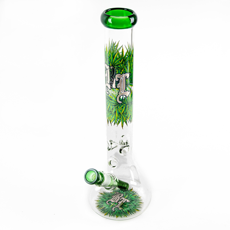 Další z řady bongů značky Black Leaf, který je posetý zelenými lístky. Ty jej zdobí jak na dlouhém skleněném těle, tak i na dně baňky.