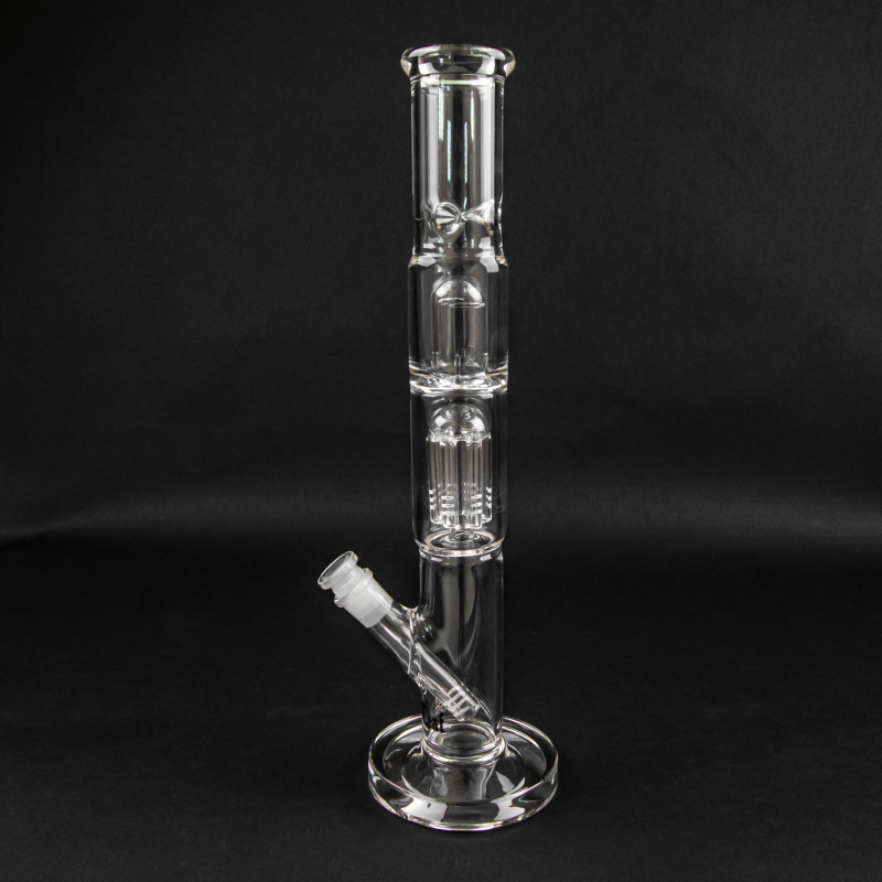 Čirý bong střední velikosti z odolného tvrzeného skla Simax se zabudovaným percolatorem pro chlazení kouře.