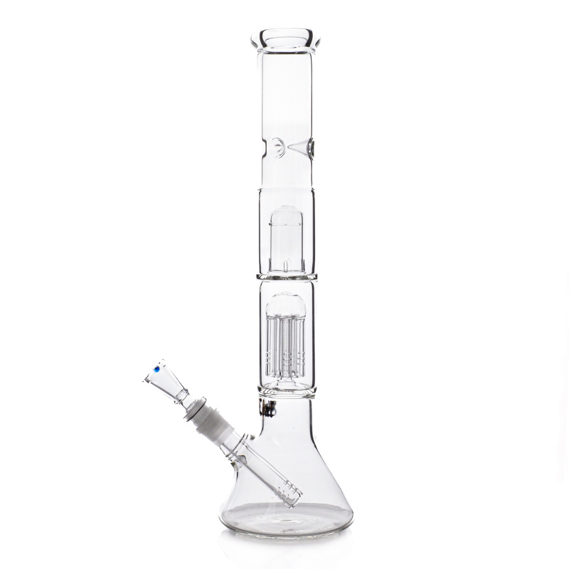 Čirý bong střední velikosti z odolného tvrzeného skla Simax se zabudovaným percolatorem pro chlazení kouře.