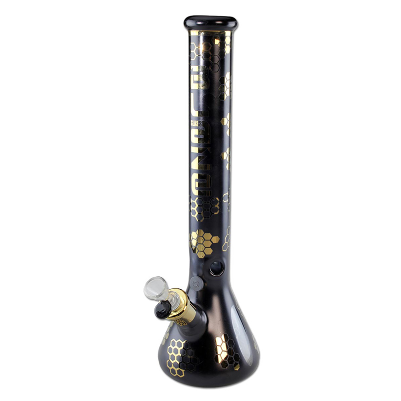 Vyrůstali jste v ghettu, na krku nosíte zlaté řetězy a rap je pro vás všechno? Ne? Nevadí. Bong Simax Blaze Flask HoneyComb vám stejně přiroste k srdci. Design bongu s matně černým základem doladěný lesklými zlatými prvky je totiž luxusní. A máme na mysli skutečný luxus, nikoliv navoněnou bídu.