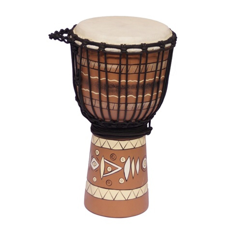 Buben typu djembe vydlabaný z jednoho kusu dřeva a potažený kozí kůží. Buben byl ručně vyroben na indonéském ostrově Bali.