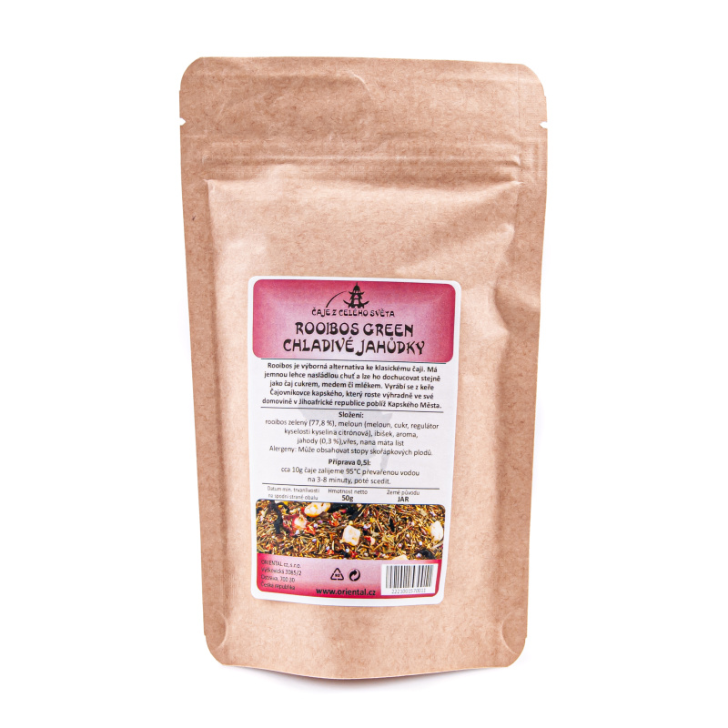 Popis produktu Bylinný čaj Rooibos Green Chladivé jahůdky 50 g