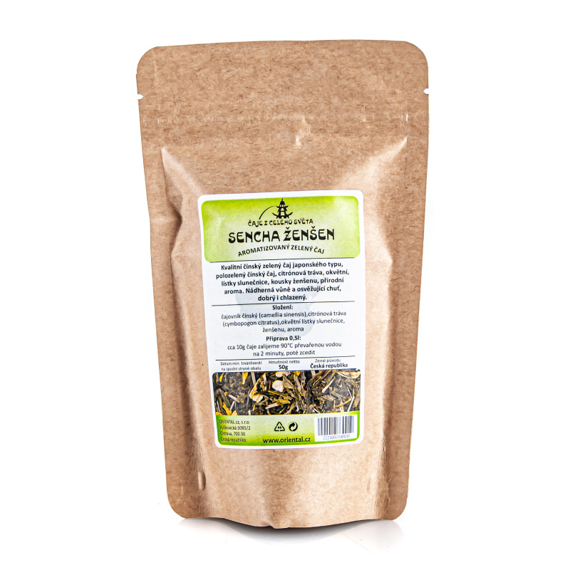 Popis produktu Čaj aromatizovaný Sencha Ženšen 50 g