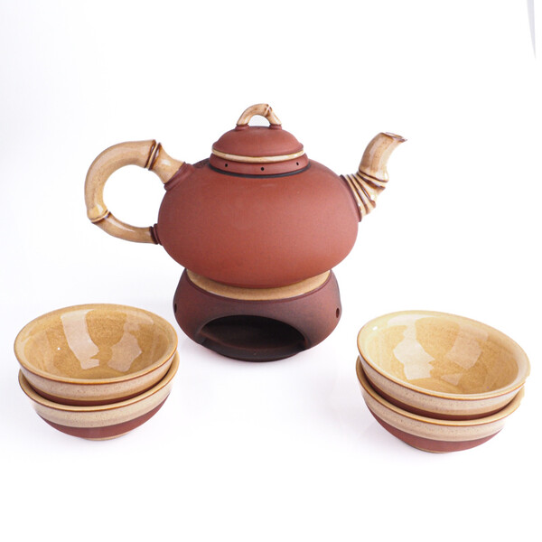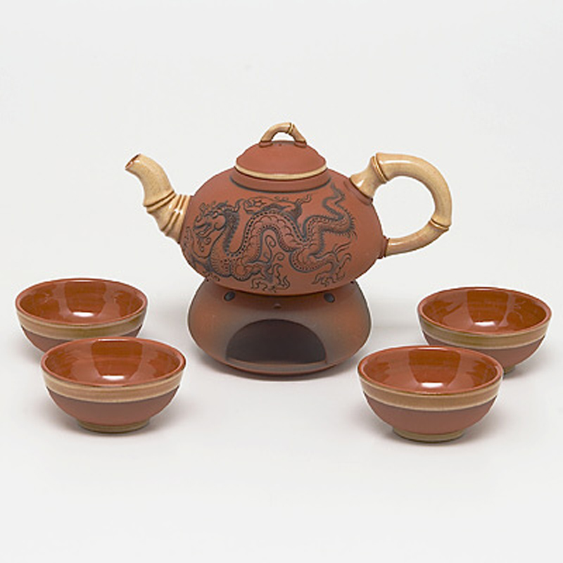 Čajová souprava Drak červená - konev s vnitřním sítkem + čtyři šálky, objem 400 ml