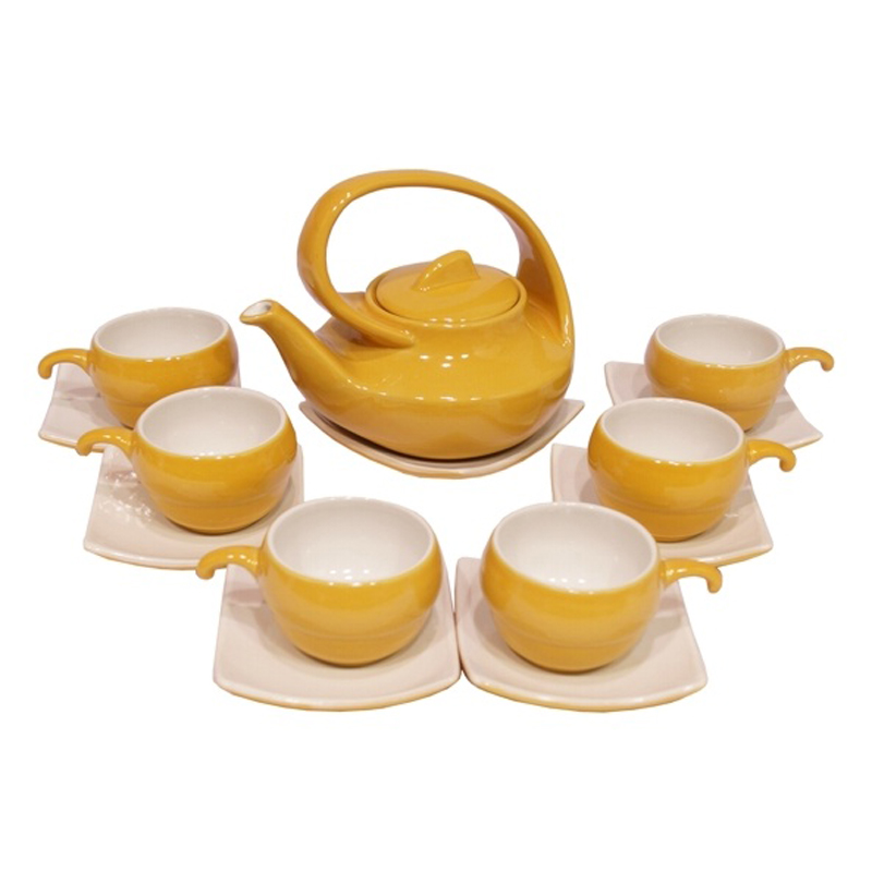 Jednoduše zbarvená čajová souprava z Vietnamu Giang se šesti šálky.