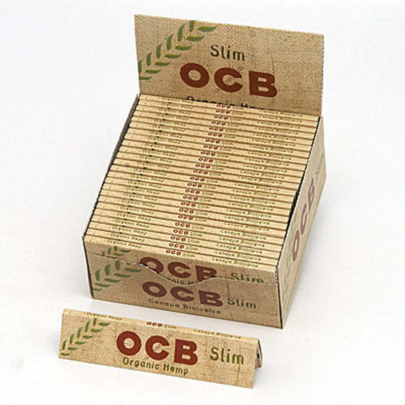 Box cigaretových papírků OCB Organic Slim, velikosti king size, obsahuje celkem 50 kusů balení (bookletů) těchto papírků, značky OCB. Každý booklet přitom obsahuje 32 "listů" jednotlivých papírků. Tyto skvělé cigaretové papírky z neběleného organického konopí jsou transparentní, na každém listu je originální hologram OCB. Obal papírků je vyroben z recyklovaného papíru.