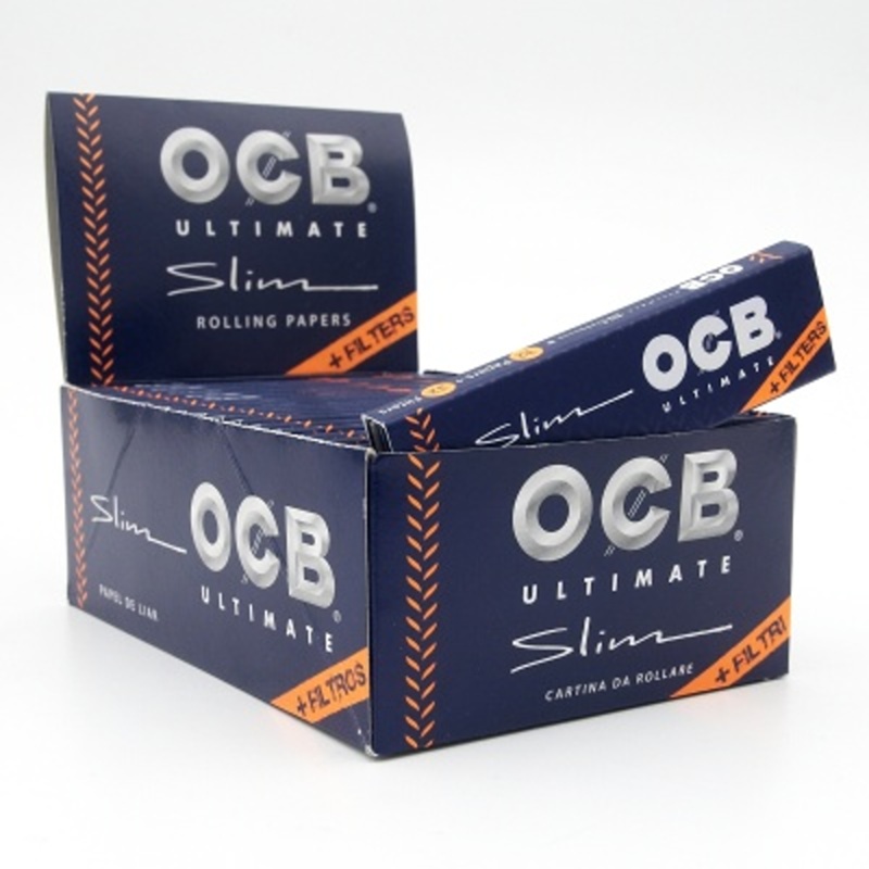 Nejtenčí a nejlehčí řada Ultimate cigaretových papírků OCB v prodloužené verzi Slim s filtry, Box 32 ks
