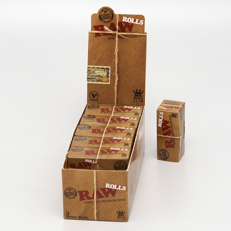 Nekonečné cigaretové papírky RAW Roll Slim jsou přírodní, nebělené.