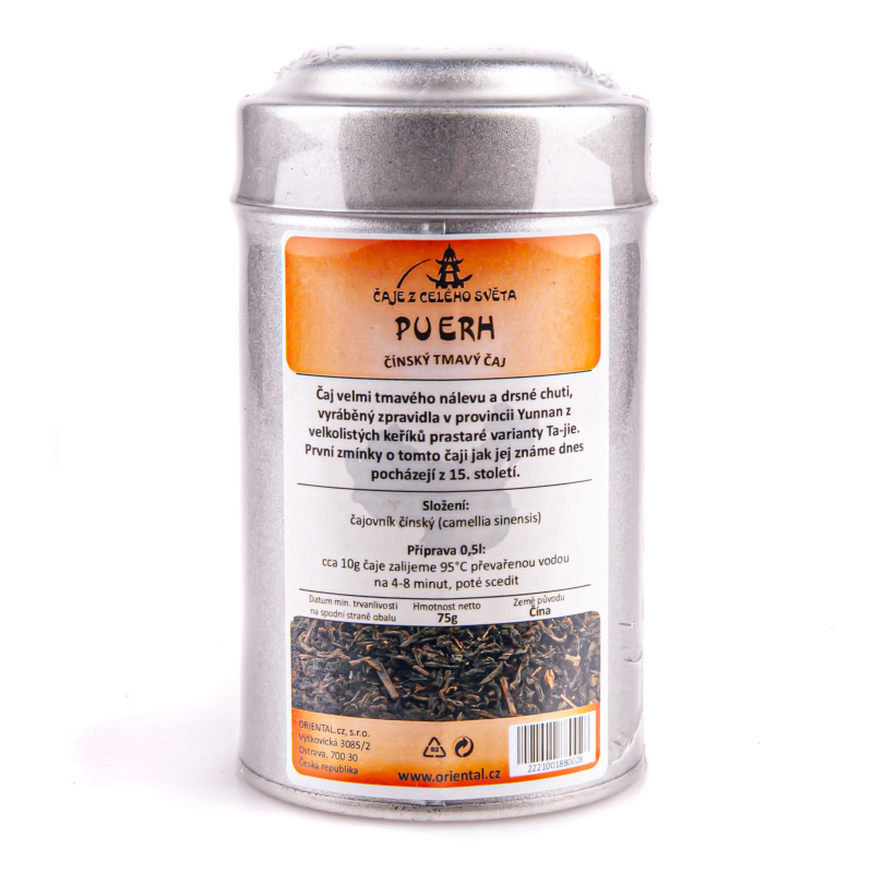 Popis produktu Čínský čaj tmavý Pu Erh 75 g dóza