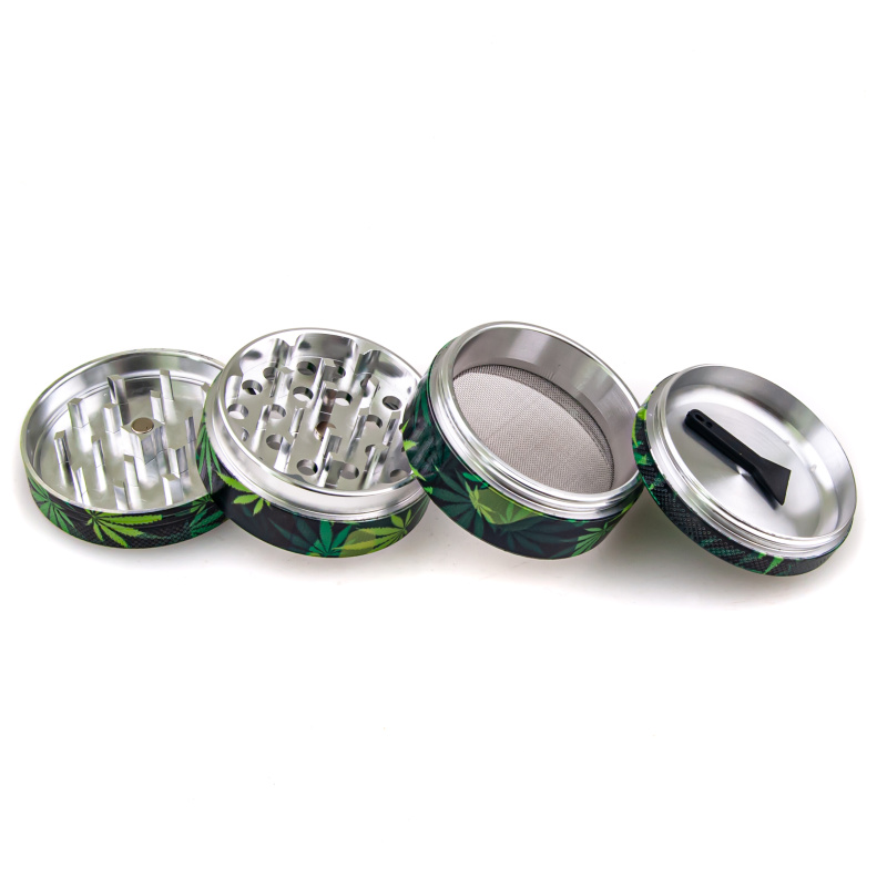 Čtyřdílná hliníková drtička Black Leaf Camouflage má diamantově tvarované hroty vyfrézované z jediného kusu materiálu na CNC stroji. Díky tomu je zajištěna vyšší kvalita drtičky a delší životnost. Její dvě části jsou k sobě přichyceny magnetem. Pro pohodlnější drcení je drtička Black Leaf Camouflage opatřena také nylonovým kroužkem a sítkem.