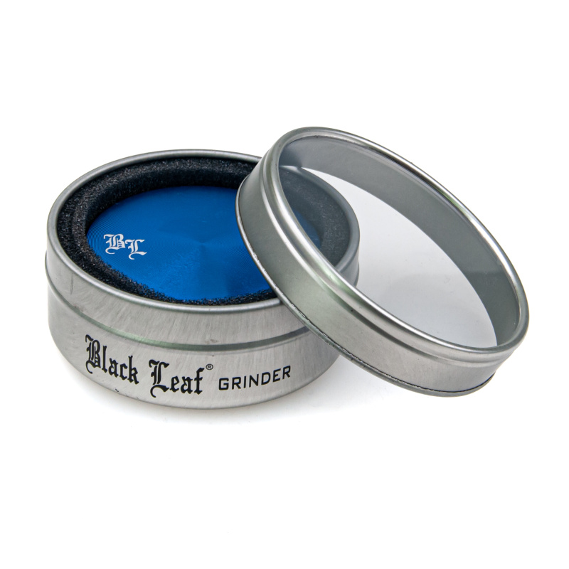 Dvoudílná hliníková drtička Black Leaf má diamantově tvarované hroty vyfrézované z jediného kusu materiálu na CNC stroji. Díky tomu je zajištěna vyšší kvalita drtičky a delší životnost. Její dvě části jsou k sobě přichyceny magnetem.
