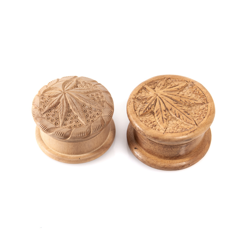 Stylová dřevěná drtička s vloženými kovovými hroty zdobená vyřezávaným motivem