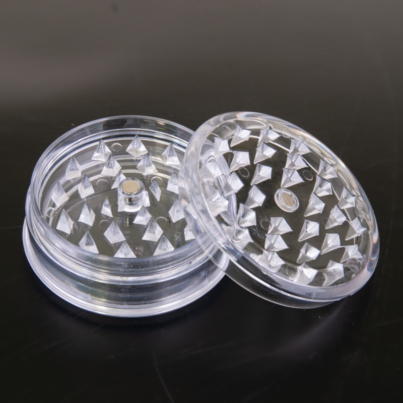 Třídílný plastový drtič (drtič se zásobníkem) a uzávěrem na magnet.