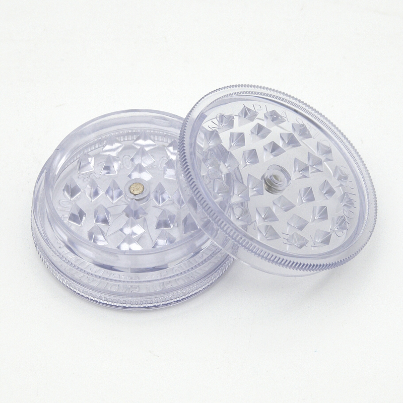 Větší plastová drtička s ostrými hroty a magnetickým zámkem. Barva čirá.