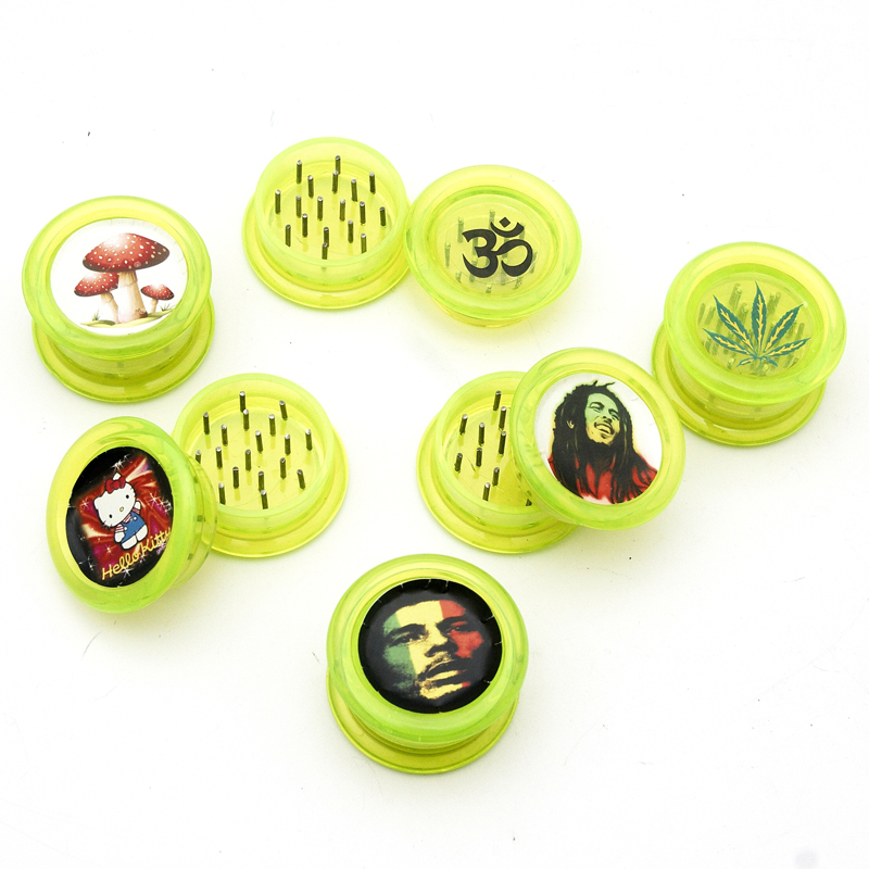 Plastová drtička v zelené barvě s ostrými hroty a nejrůznějšími motivy.
