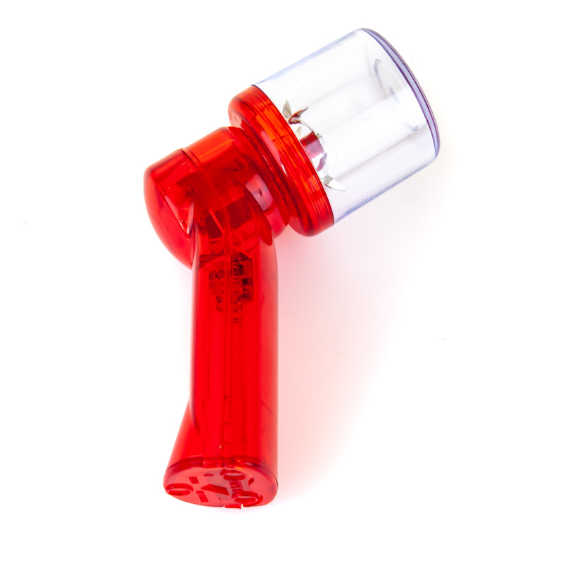 K použití tohoto drtiče stačí dvě tužkové baterie, pohánějící vrtulku s hroty. Proces drcení lze spustit zmáčknutím tlačítka po boku drtiče. Nádobka na materiál je z průhledného plastu, takže je možnost kontrolovat stav obsahu nádobky a určit míru drcení dle své potřeby. Nádobka je šroubovatelná.