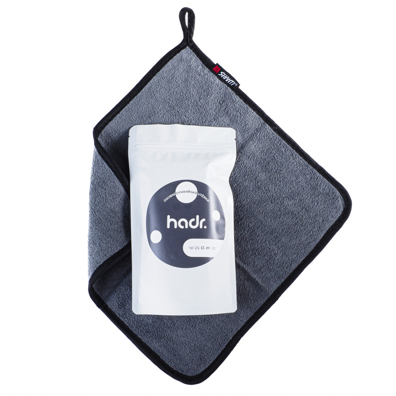Hadr je vaše nová osobní dýmkařská utěrka. Oboustranná, jemná, s pevným lemem a praktickým poutkem pro zavěšení. Vyrobená z kvalitního mikrovlákna, které skvěle saje a rychle schne. Hebká a šetrná k vašim rukám i dýmkám. Hadr můžete s klidem prát v pračce (max. 40 °C), hodit do sušičky a používat jej zas a znova. Ušetříte papírové utěrky a doma bude klid, protože jste zrovna nikomu nezničili oblíbenou utěrku. Tahle bude jen vaše, a to ve variantě šedé s černým lemem.