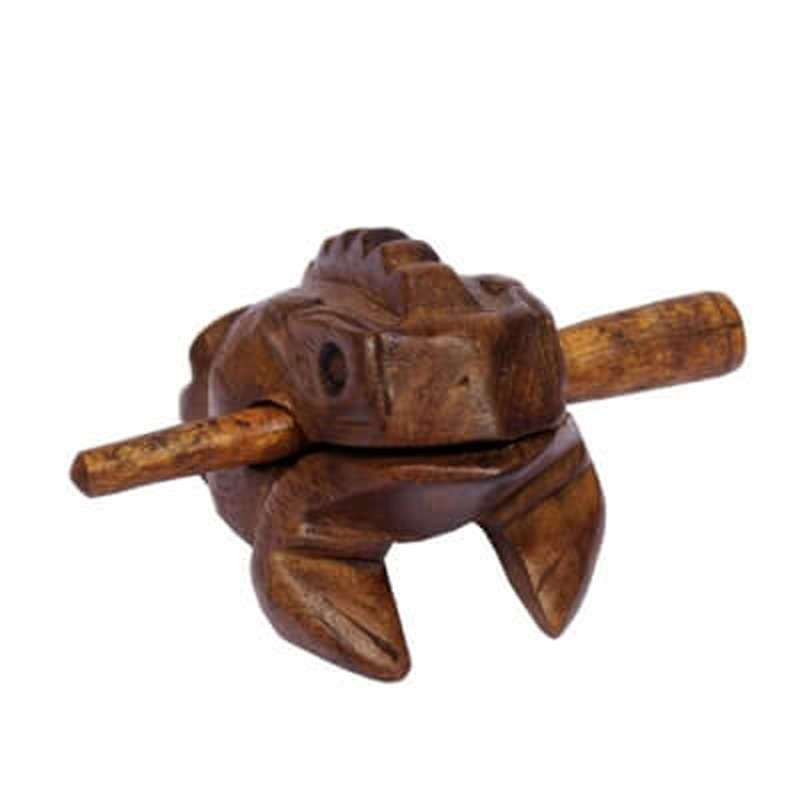 Zábavná hračka a netradiční hudební instrument zároveň. Ručně vyřezávaná žába má na zádech výstupky, které přejížděním přiloženou paličkou vyloudí veselé zvuky žabího kvákání. Úžasný nástroj pro malé i velké hračičky.
