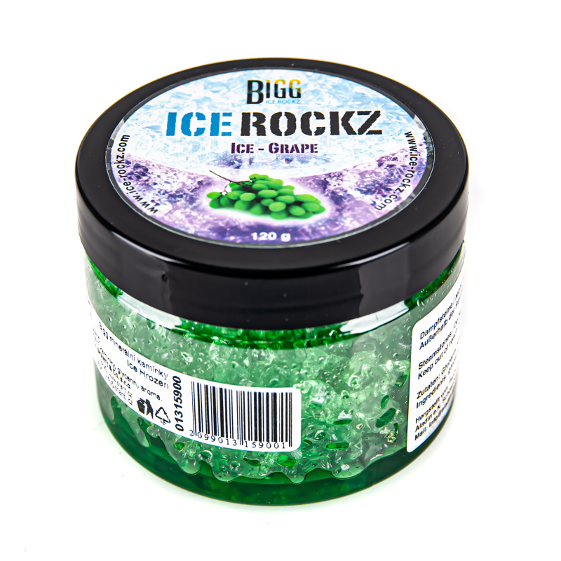 Kamínky Bigg Ice Rockz revolučním způsobem nahrazují tradiční tabák do vodní dýmky, a umožňují tak vychutnat si klasické i netradiční tabákové příchutě bez zdravotních rizik. Tajemství kamínků Ice Rockz spočívá v nahrazení tabákových listů hydroponickým gelem, který nasává glycerin i ochucenou melasu, a je tak perfektní náhradou tabákových listů i přírodních minerálních kamínků. Gel se zahříváním dostává do bodu varu, a aromatická kapalina uvnitř se odpařuje v podobě hustých oblak lahodné páry. Ice Rockz mají osvěžující ledovou chuť a dlouhotrvající aroma, které jsou zárukou požitku z kouření.