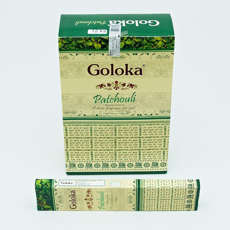 Vonné tyčinky Goloka Patchouli jsou unikátní směsí vzácných bylin, květů, medu, pryskyřic a olejů. Jsou vyrobeny pouze z přírodních materiálů bez toxických látek.