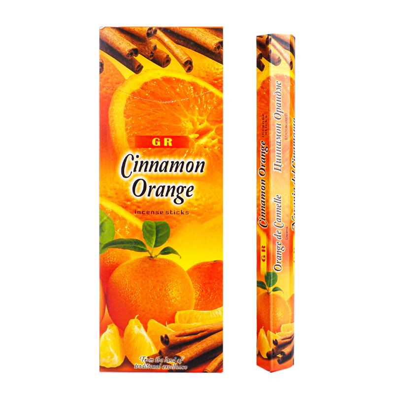 Indické vonné tyčinky GR Cinnamon Orange, vůně skořice a pomerančů pro rozveselení a bezstarostnost