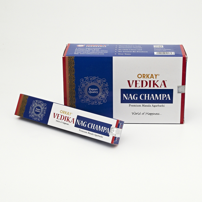 Vonné tyčinky Vedika obsahují z velké části (přibližně 97%) přírodní ingredience, díky čemuž jsou přátelské k životnímu prostředí, hoří déle a jejich pronikavá vůně se rozléhá po velkém prostoru.