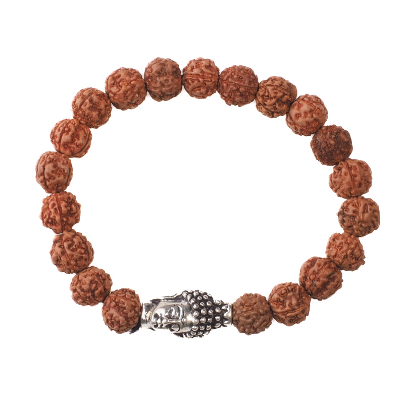 Něžný náramek je ručně vyroben na exotickém ostrově Bali z posvátných semen Rudraksha ozdobený kovovým prvkem ve tvaru hlavy Buddhy. Rudraksha je oblíbeným materiálem pro výrobu tradičních buddhistických růženců, zvaných Japa Mala (Thengwa). Nyní můžete mít tyto magické korálky stále u sebe ve formě elegantního náramku.