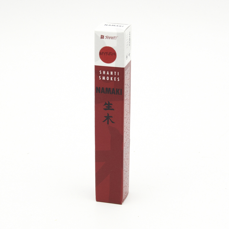Japonské vonné tyčinky Namaki Myrrh jsou známé svojí jemností a ušlechtilou vůní. Jsou vyrobeny ze vzácných dřevin a nejkvalitnějších přírodních silic. Ve vůni těchto tyčinek naleznete typickou preciznost a míru vkusu japonské kultury.