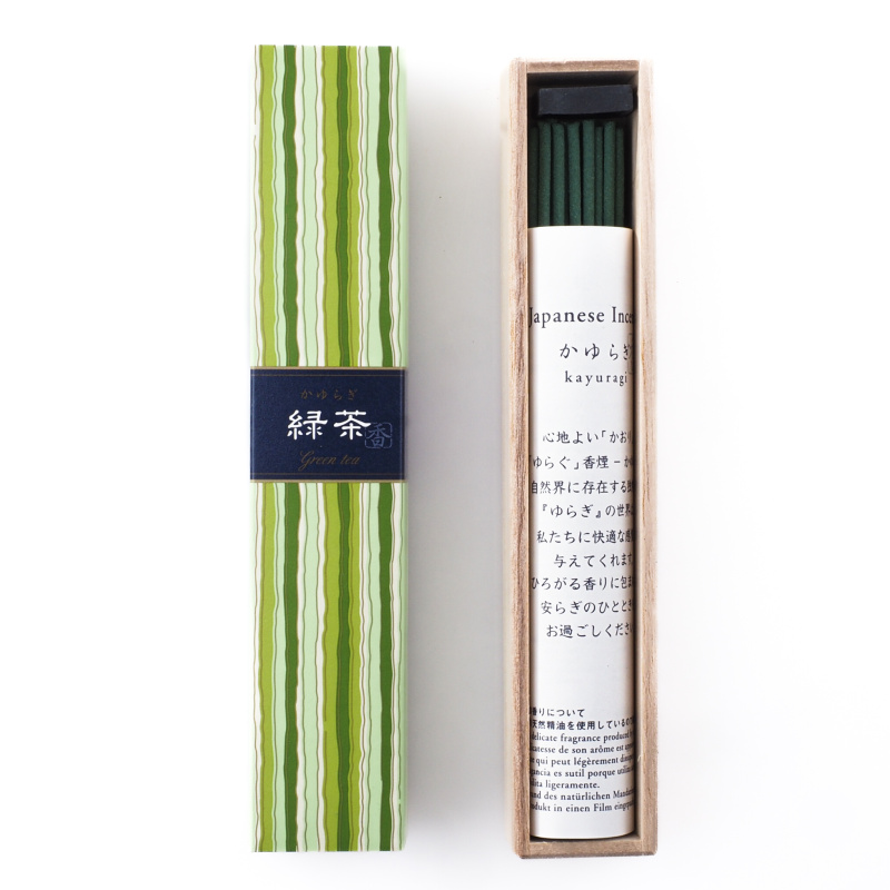 Japonské vonné tyčinky Nippon KAYURAGI Green Tea, to je prvotřídní vůně pro meditaci, relaxaci, snížení stresu, masáže, čtení, jógu a koupání.