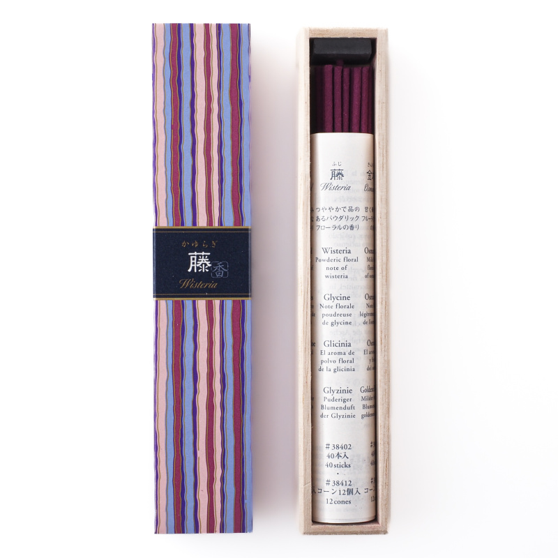 Japonské vonné tyčinky Nippon KAYURAGI Wisteria, to je prvotřídní vůně, vytvářející atmosféru spokojenosti a klidu.