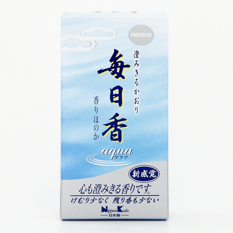 Mainich-koh Aqua, vonné tyčinky ke každodennímu použití, patří mezi nejoblíbenější v celém Japonsku už od roku 1912. Lehká a svěží vůně růže, jasmínu bramboříku, citrusů a příjemným podtónem vodního melounu.